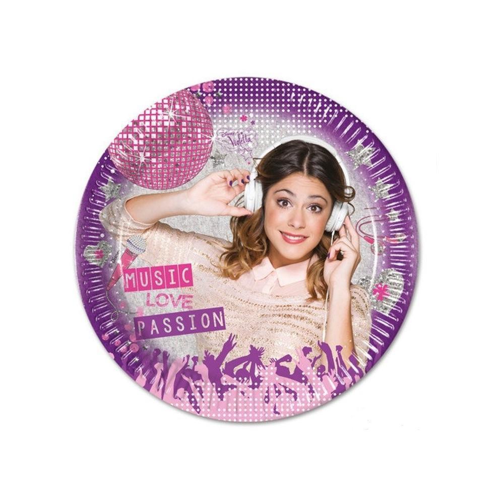 Niepowtarzalne jednorazowe talerzyki urodzinowe z motywem popularnej Violetty. Fantastyczny dodatek do imprezy urodzinowej dla Naszej małej pociechy.
