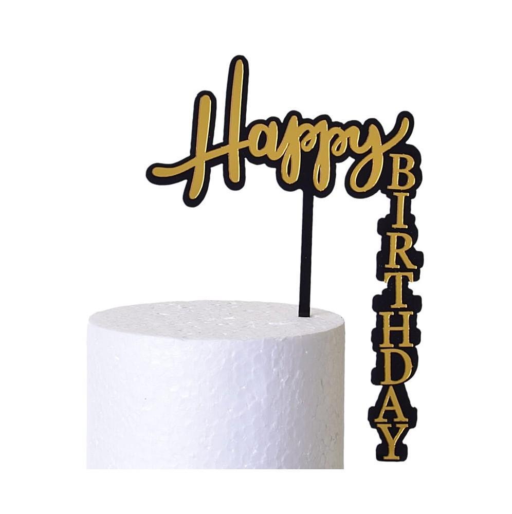 Topper akrylowy Happy Birthday Czarno Złoty