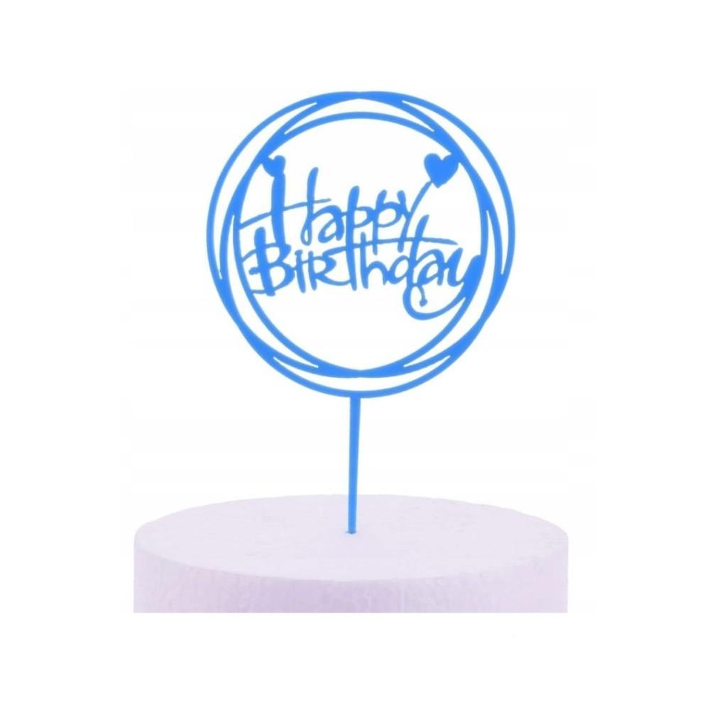 Topper Na Tort Happy Birthday Niebieski-Koło