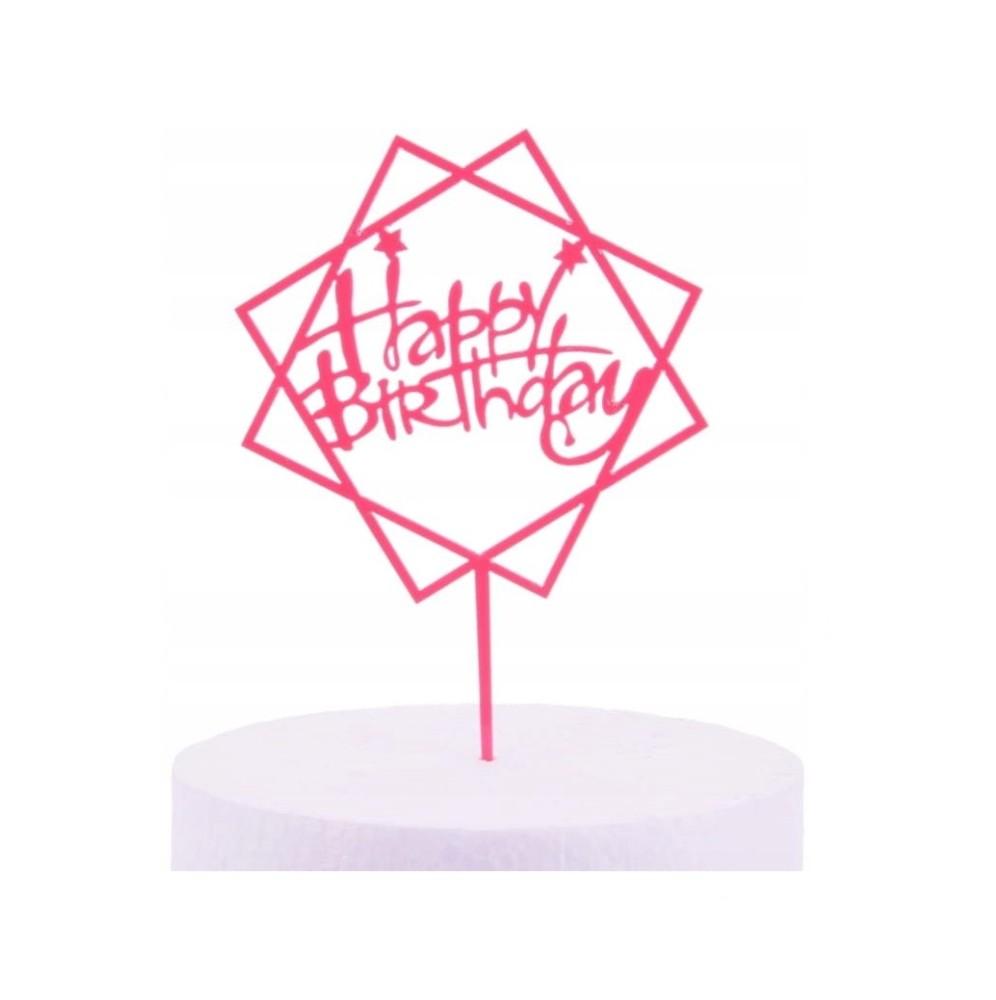 Topper Na Tort Happy Birthday Różowy-Kwadrat