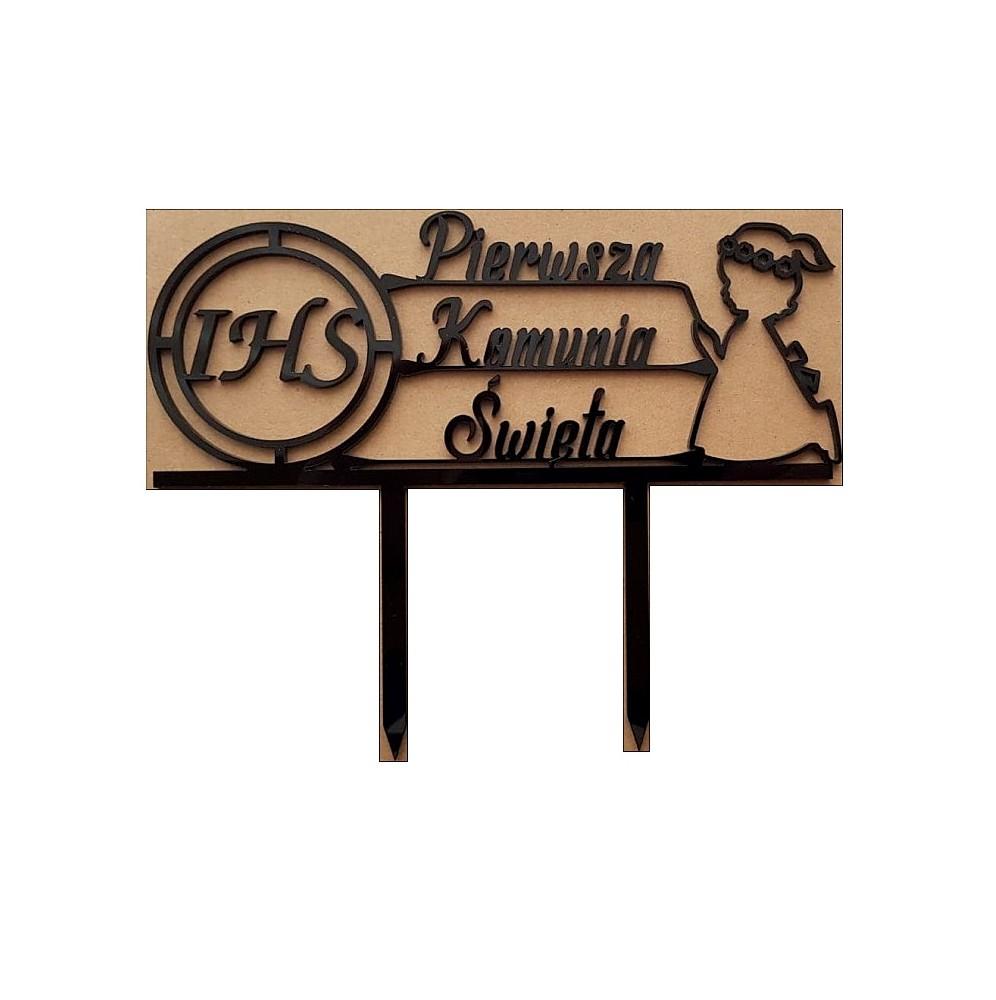 Topper Na Tort Komunia-Dziewczynka Klęcząca-PLEKSI CZARNA
