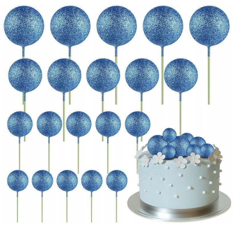 Zestaw topperów na tort „Kule niebieskie brokatowe na piku” to wyjątkowa ozdoba, która nadaje ciastu efektowny, przyciągający wzrok wygląd. Dekoracje wykonane są w eleganckim, niebieskim kolorze z brokatowym wykończeniem, co idealnie komponuje się z różnorodnymi stylami wypieków, nadając im subtelny blask i charakter.