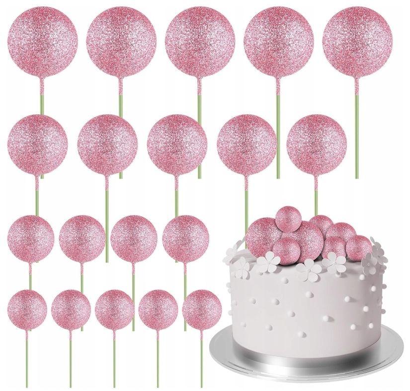 Zestaw topperów na tort „Kule różowe brokatowe na piku” to wyjątkowa dekoracja, która doda każdemu wypiekowi eleganckiego i wyjątkowego wyglądu. Różowe, brokatowe kule doskonale podkreślają uroczysty charakter okazji, nadając ciastu subtelnego blasku i lekkości.