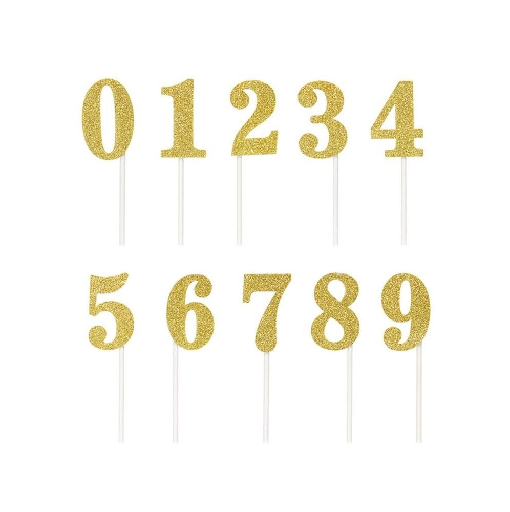 Topper Na Tort ZŁOTE BROKATOWE cyfry 0-9 Zestaw