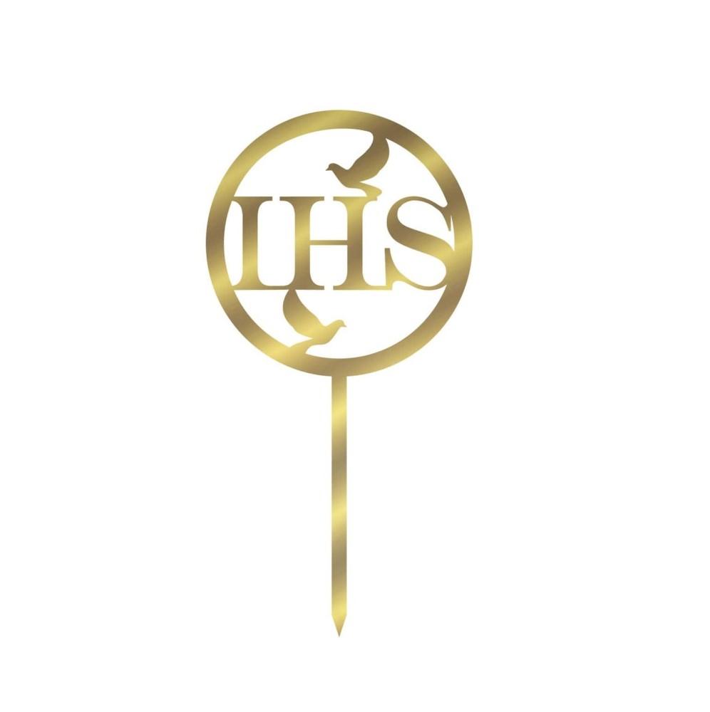 Topper z lustrzanej pleksi złoty na tort Komunia
