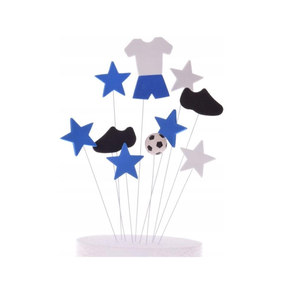 Fantastyczny zestaw topperów na tort z motywem piłki nożnej.