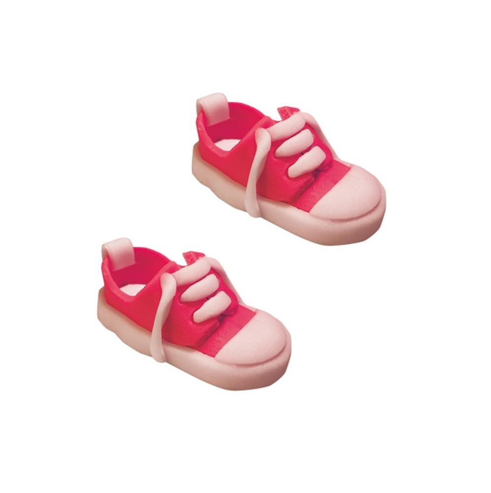 Fantastyczna dekoracja na tort w postaci bucików koloru różowego.