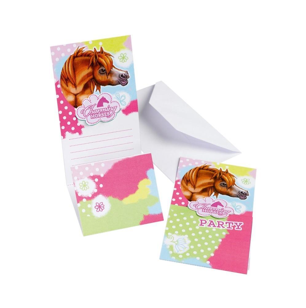 Zaproszenia na urodziny z kopertą-Konie-6 szt.