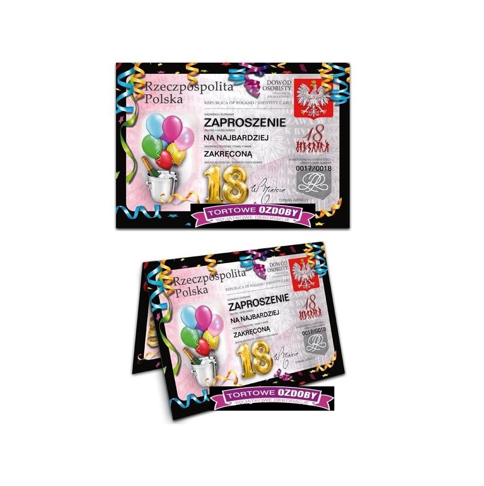 Zaproszenie na 18-stkę-dowód osobisty-10 sztuk