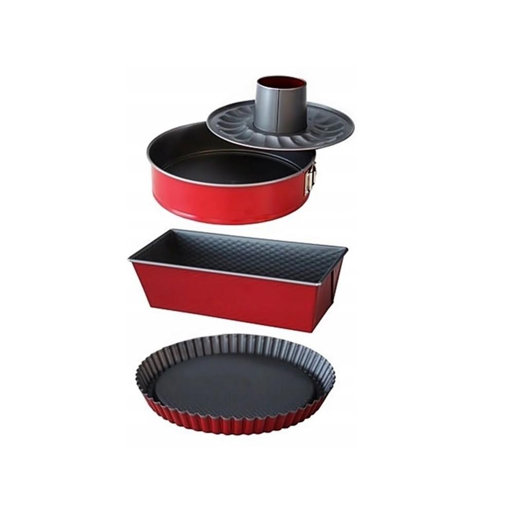 Praktyczny zestaw trzech form do pieczenia z doskonale przewodzącą ciepło stalą węglową.