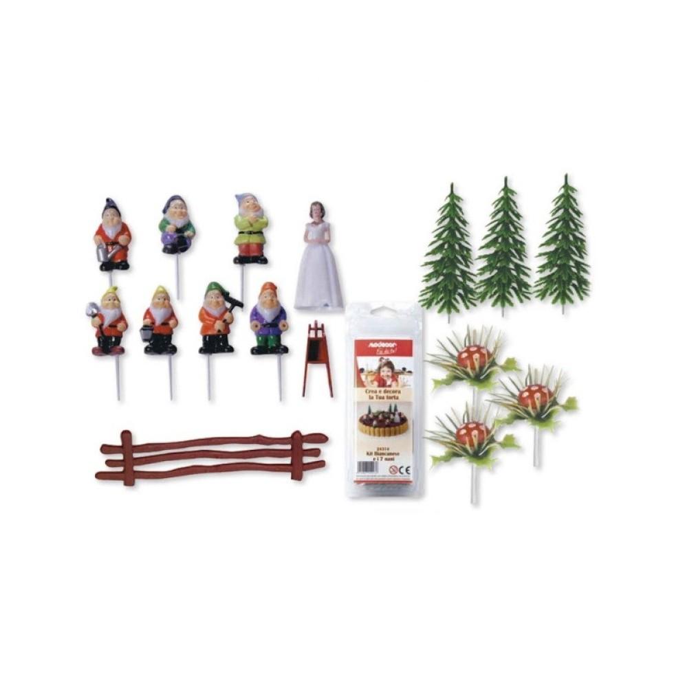 Wspaniały zestaw do dekoracji tortu urodzinowego dla dzieci z motywem Królewny Śnieżki. Zestaw popularnej firmy Kardasis. Dekoracje tego producenta to najwyższa jakość oferowanych produktów. Zestaw został wykonany z najlepszej jakości materiałów sztucznych i nie nadaje się do spożycia. Elementy zestawu tak jak na zdjęciu. Cena dotyczy 1-ego zestawu.