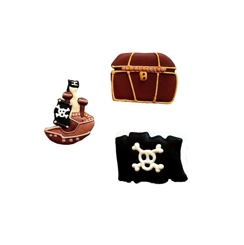 Fantastyczny zestaw piracki wykonany z cukru to idealna dekoracja do tortu w stylu pirackim.